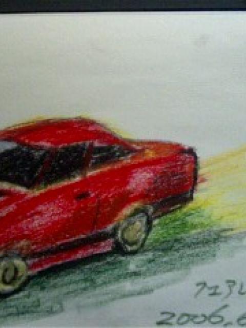 ミニカーを見て描きました。クレヨン...