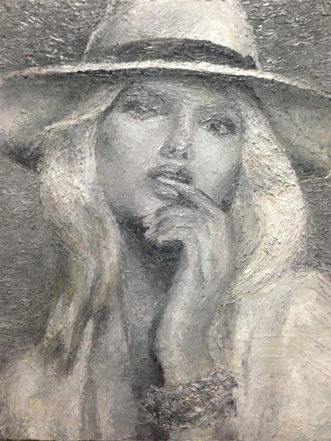 油絵です。女性をモノクロで表現しました。